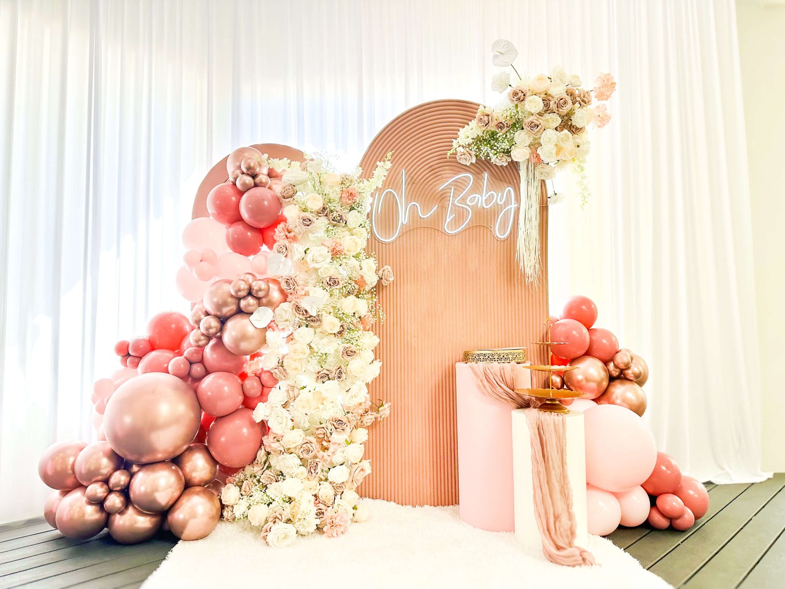 Whether you’re dreaming of a soft pastel setup or a fun and colorful theme, our team will bring your vision to life with custom balloon installations, elegant backdrops, and sweet decorative details that make your event unforgettable.
